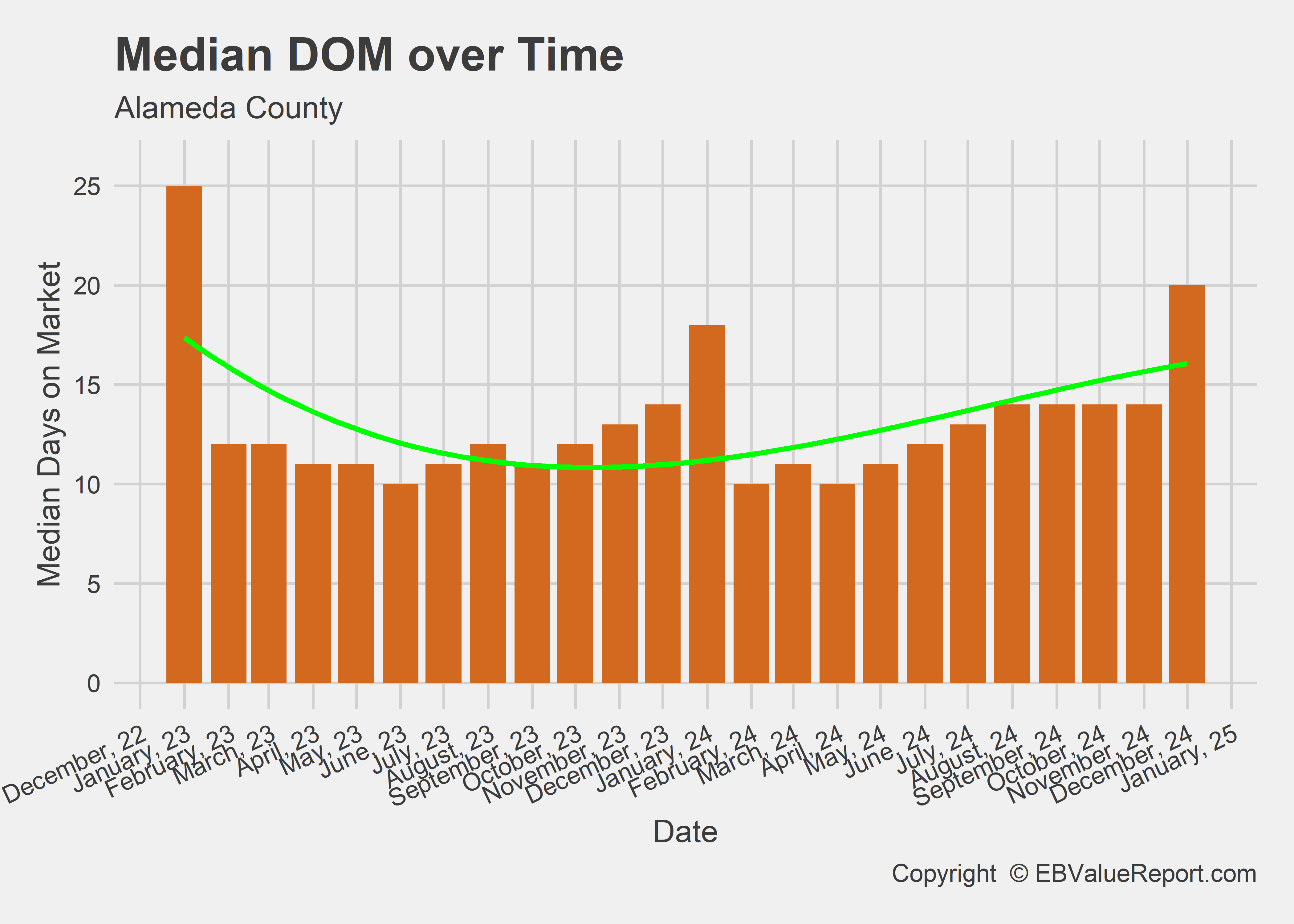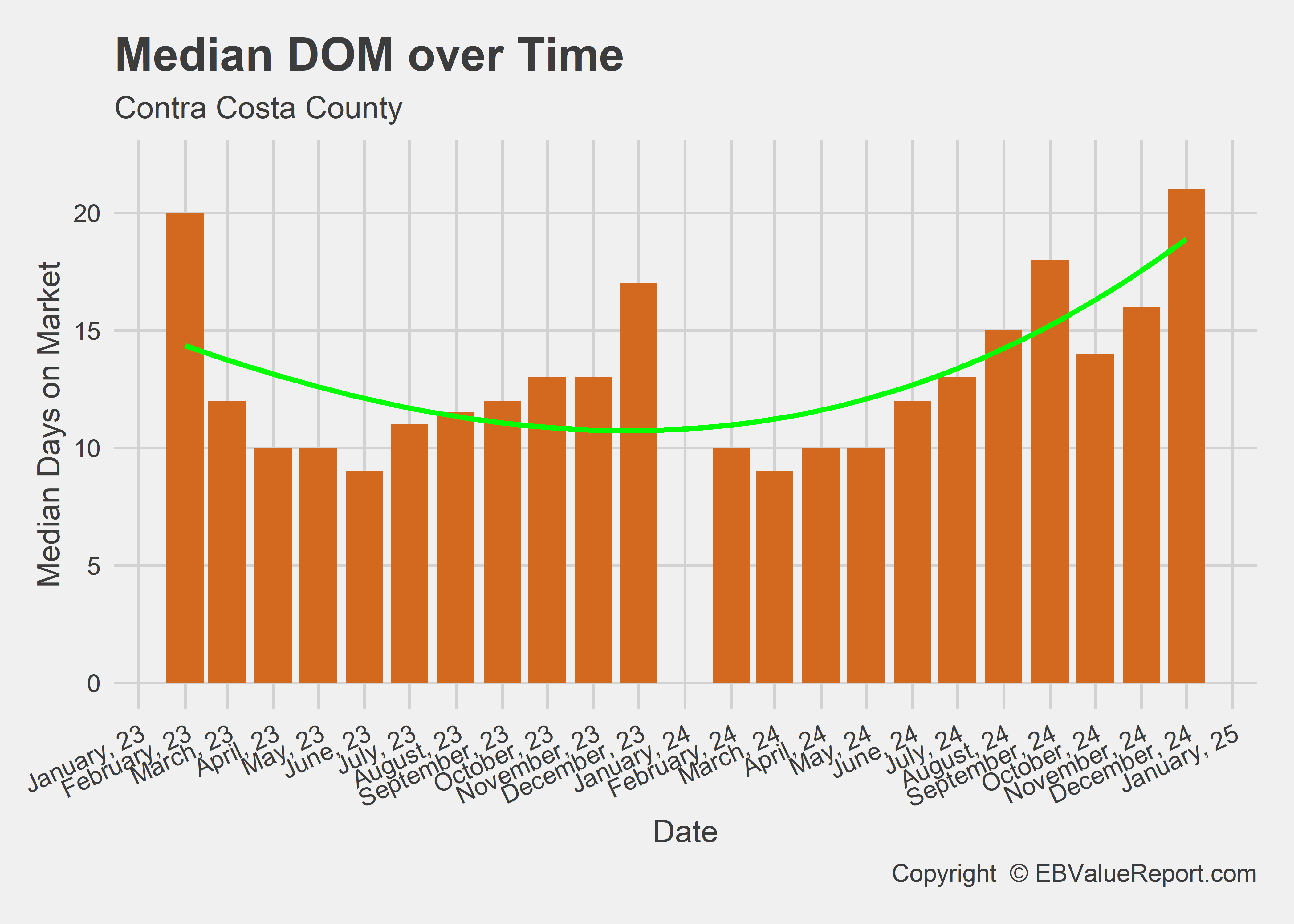 | Median DOM | 18 | 22 | 22.2% |