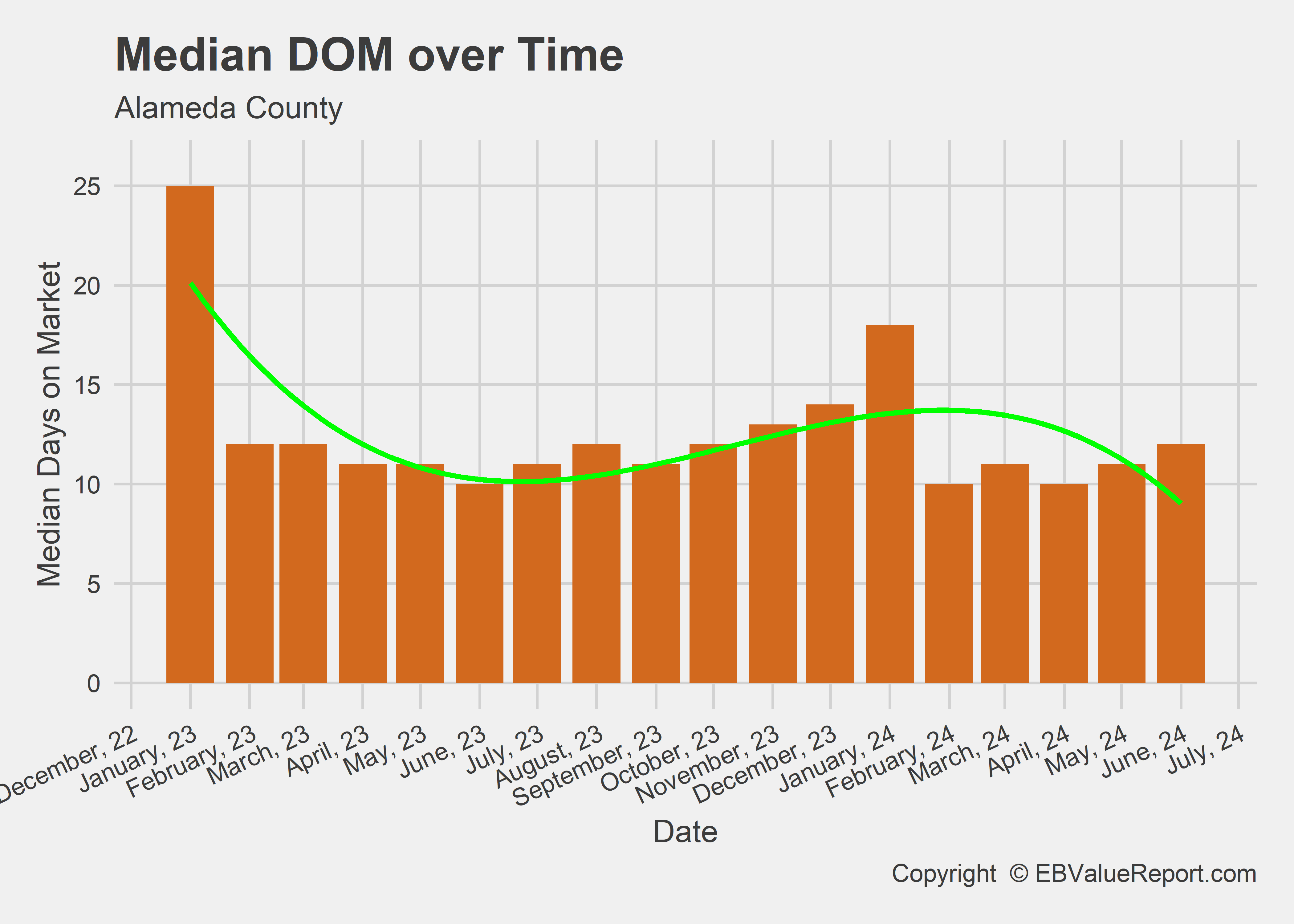 | Median DOM | 11 | 12 | 9.1% |