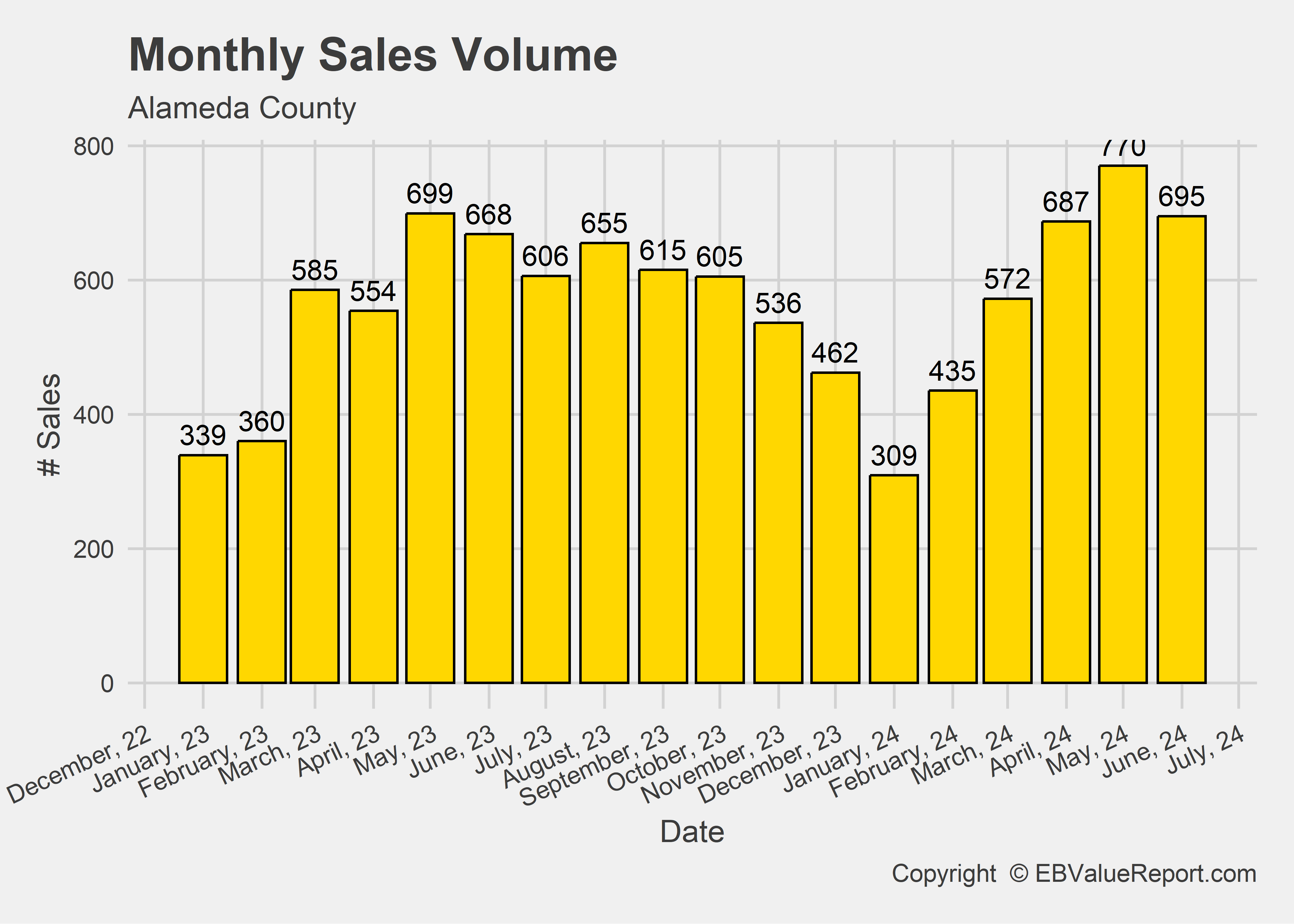 | Number of Sales | 770 | 695 | -9.7% |