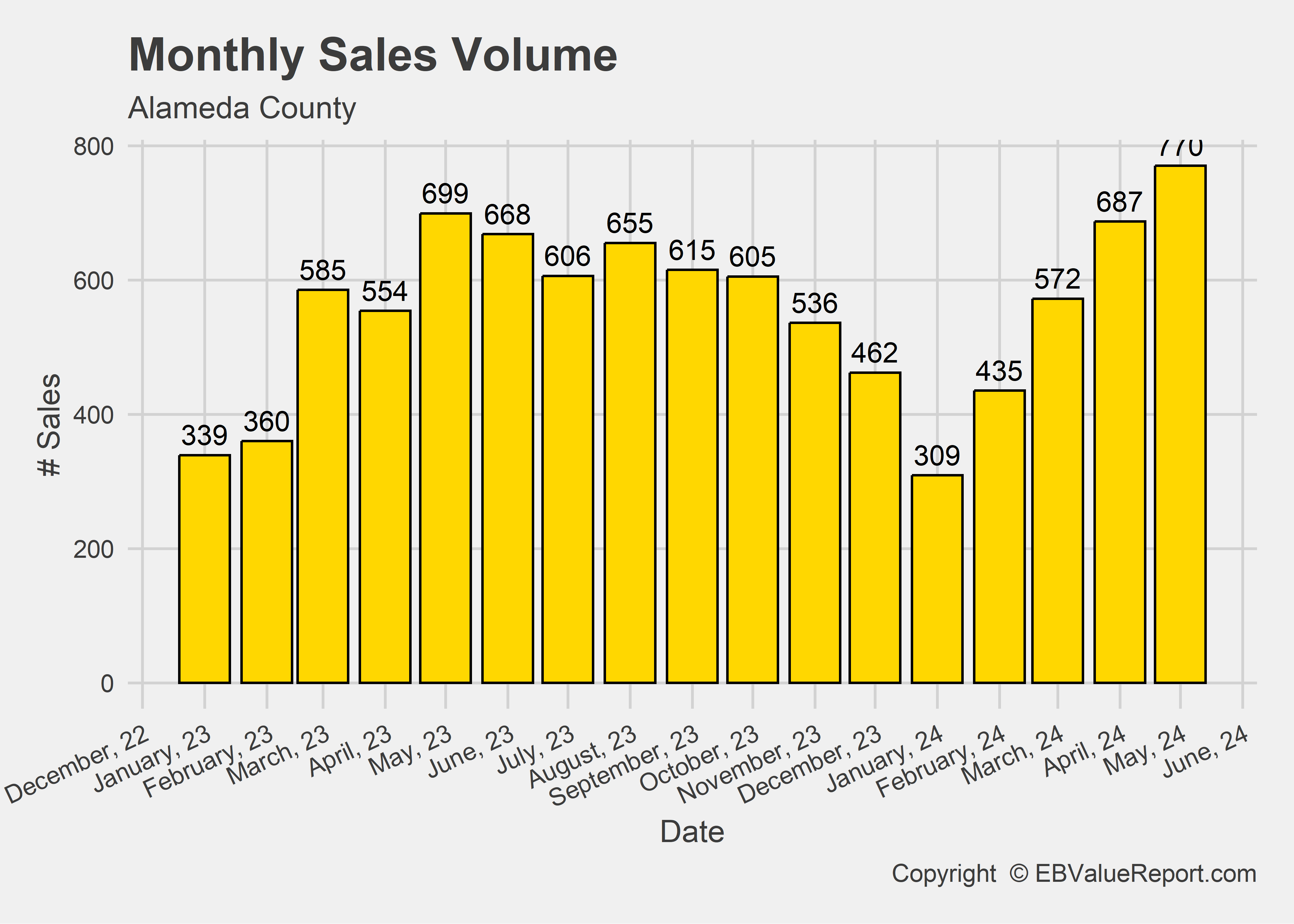 | Number of Sales | 687 | 770 | 12.1% |